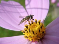 ナミホシヒラタアブ コスモスの花