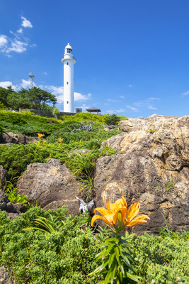 スカシユリの花と_ヶ埼灯台
