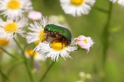 ハルジオンとコアオハナムグリ