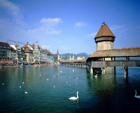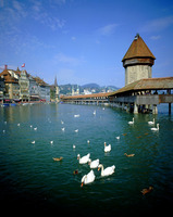 カペル橋,Chapel Bridge,湖畔,白鳥,ロイス川,ルツェルン湖,Vierwaldstatersee,ルツェルン州,Canton of Lucerne,ルツェルン,Lucerne