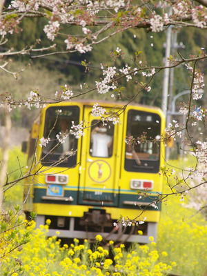 小湊鉄道の菜の花と桜