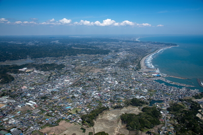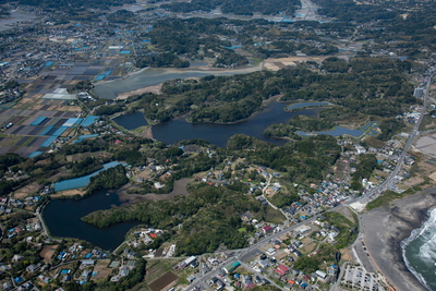 大原駅と大原の町並みより九十九里浜
