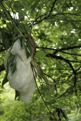 モリアオガエルのおたま食べるヒバカリ