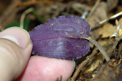 ヒトツボクロ・葉の裏は赤紫色