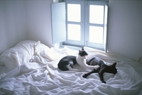 ベットでじゃれる猫