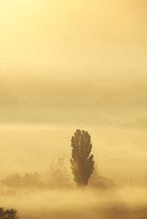 朝霧とポプラの木