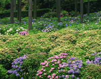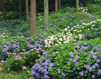 杉木立と紫陽花