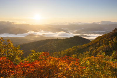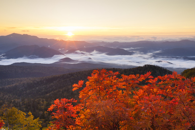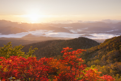 赤岳中腹より望む日の出と紅葉
