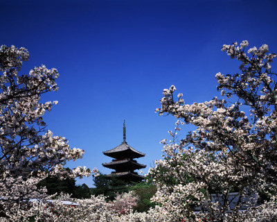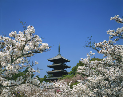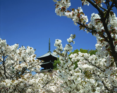 御室の桜と五重塔。仁和寺 世界遺産