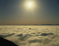 霧の海に浮かぶ石鎚連峰と朝日、野呂山にて