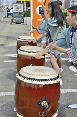 和太鼓を打つ
