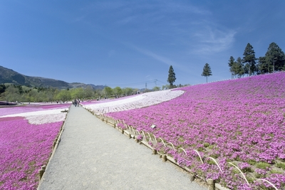 くじゅう花公園の芝桜と九重連山