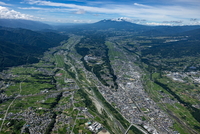 甲府駅と甲府市の街並みより甲府盆地