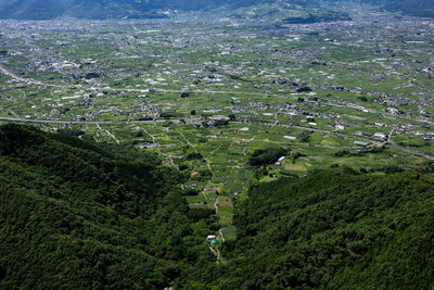 勝沼,一宮の扇状地と甲府盆地(釈迦堂パーキング付近)山側より