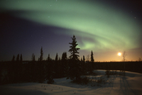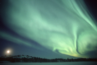 月の出と激しいオーロラ