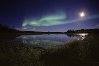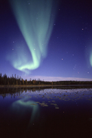 ビーバーの棲む沼にオーロラが反射する