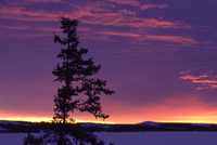 夕焼けの湖にオーロラが反射する
