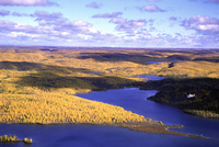黄葉の大地を飛ぶ水上飛行機
