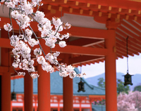 朱塗りの回廊と桜 平安神宮