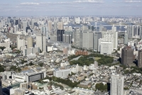御殿山を手前に品川駅と周辺高層ビル群