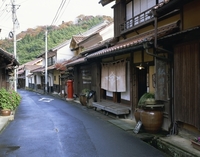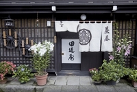 古い町並みの店と鉢植え
