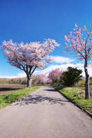 真狩神社の桜並木と羊蹄山