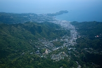 相模湾より真鶴半島と真鶴の街並み
