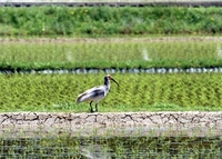 トキ(背中に通信機をつける)水田