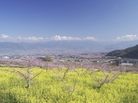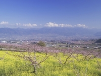 桃畑と菜の花と甲府盆地