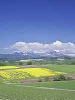 大雪山と菜の花