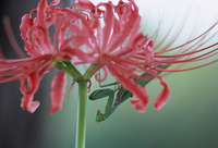 彼岸花と蟷螂(ハラビロカマキリ)