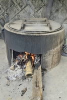 かまどで茹でる