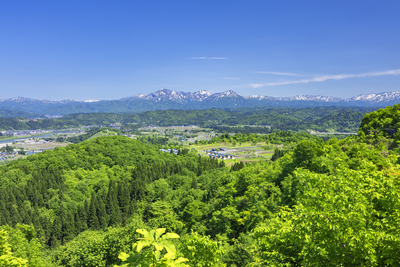 魚沼盆地(岡新田,十日町周辺より八海山,越後駒ヶ岳方面)