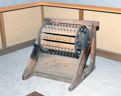 昔の道具(足ふみ脱穀機)