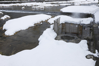 雪の三朝温泉の河原風呂