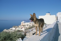 石垣の上の犬