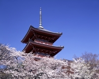 清水寺三重塔と桜 世界遺産