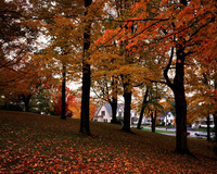 紅葉と白い家並