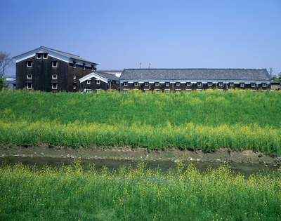 黄色い花と伏見の酒蔵