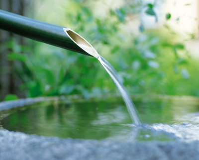 青竹から落ちる水