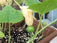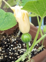 オモチャカボチャ・雄花のおわりと雌花つぼみ