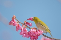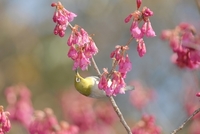 メジロ カンヒザクラのみつを吸う