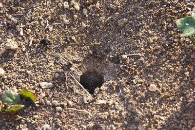 クロヤマアリ 早春の巣の出入り