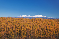日高山脈とカラマツ林の秋