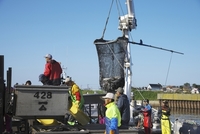 羅臼港のサケの荷揚げ