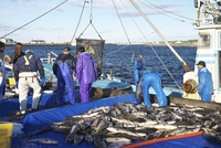 根室漁港、サケの水揚げ