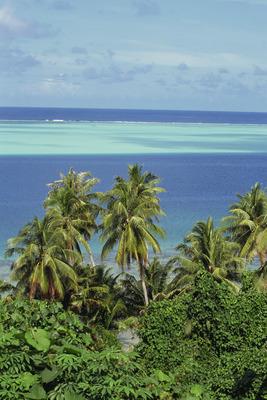 タヒチ島パペーテから見たモーレア島とカヌー