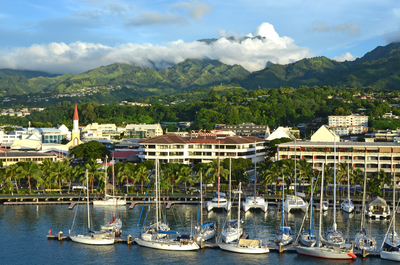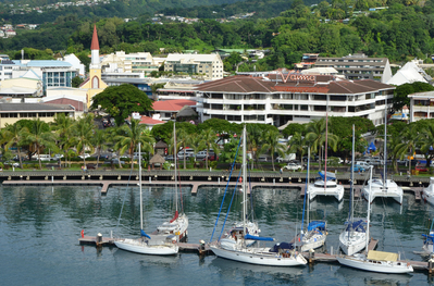 タヒチ島 パペーテのヨットハーバーと中心街