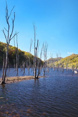 落合ダムと立枯れの木