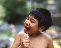 ソーセージを食べる子供